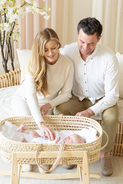 This style of newborn photography focuses on family connection. It involves photographing the newborn with their parents, siblings, and pets. It can be done in studio or in home. It’s a great way to incorporate a personal touch of having photos in the newborn's nursery and the parent’s bedroom. It can create an intimate feel and capture your life in this moment. It's a beautiful way to capture love and connection amongst the family. I personally use a bassinet, swaddles and blankets, but no other props.